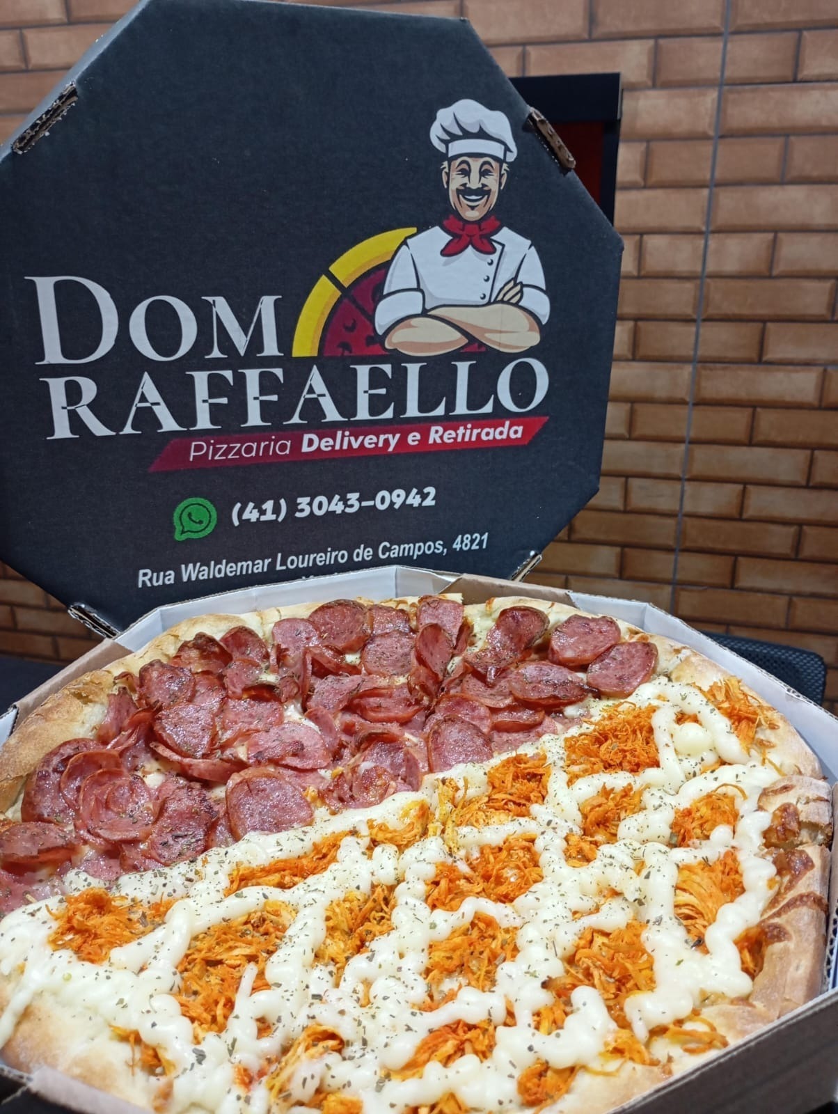 Molho, Mussarela, Calabresa, Frango, Milho, Palmito, Catupiry e orégano.